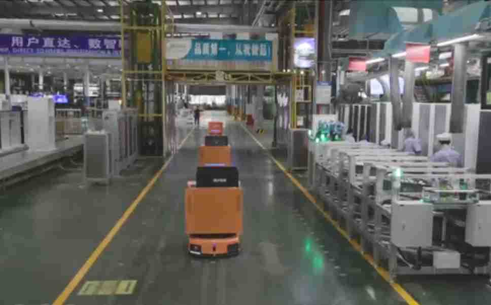 为车载冰箱物流配送打造的智能解决方案,,包含产中物流通过潜伏举升AMR搬运至线边,,产后成品物流智能仓储,,流程包含产中物流智能齐套入库,,,,线边安灯叫料AMR智能配送至线边,,,,成品入库、、、、出库,,通过无人堆高车机器人,,智能仓储管理替代人工作业管理,,实现更高存储、、、更高效率、、、、更具柔性化的解决方案。。。